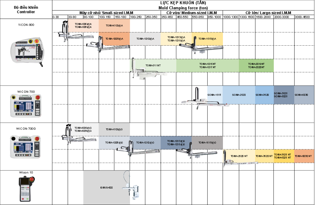 *Bảng trên được hiển thị nhằm giúp người dùng hiểu rõ hơn khi chọn robot. Các thông số liên quan có thể thay đổi tùy theo điều kiện dự án, vui lòng trao đổi thêm.